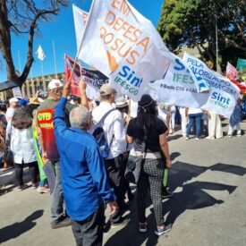 Representando o Sint-IFESGO, estiveram presentes, o coordenador geral, Fernando Mota, e os dirigentes sindicais, João Pires Jr e Eduardo Marques, Rosilene Alves.